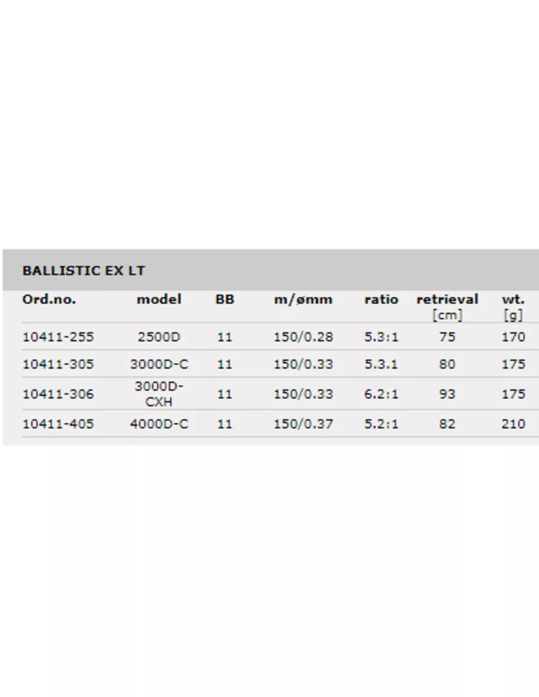 De Daiwa Ballistic EX LT is de doorontwikkelde en betere versie van de bekende Ballistic LT. De Ballistic spinmolen is zoutwaterbestendig en bijzonder licht. De vernieuwde versie is gemaakt middels het nieuwe Zaion V principe, dat voor een langere levensduur, lager eigen gewicht en hogere inhaalsnelheid zorgt. De Daiwa Ballistic EX LT heeft een zeer hoge dragpower.