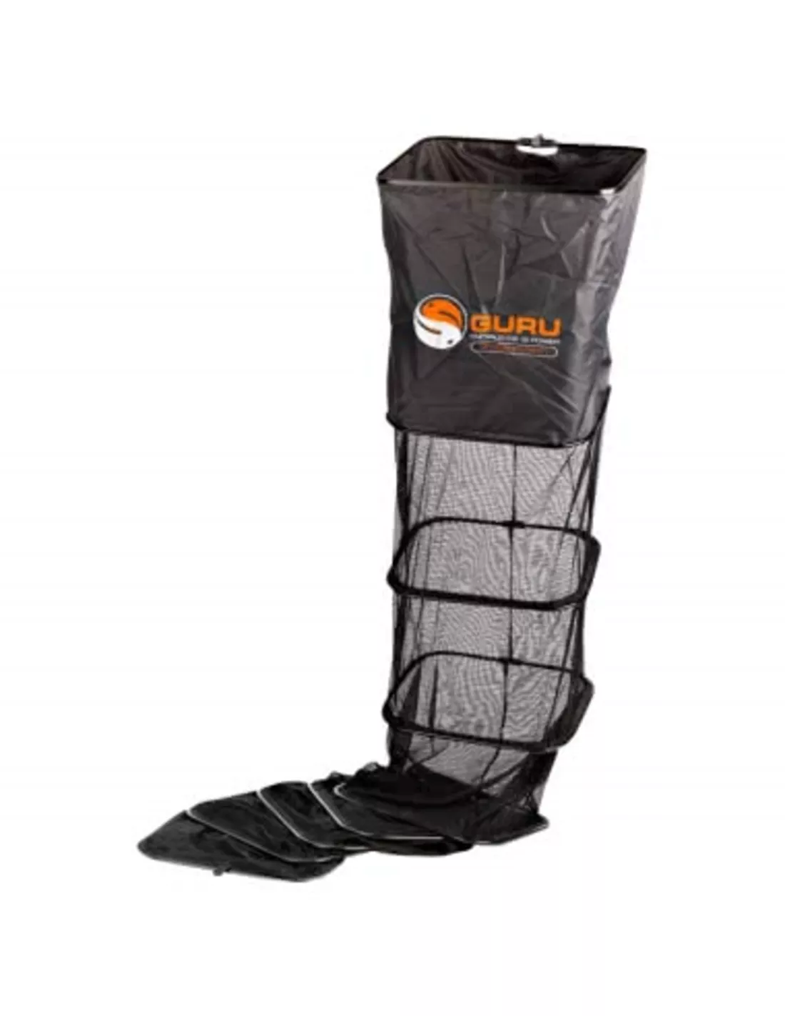 De Guru Leefnetten zijn geschikt voor verschillende situaties en vissoorten, waarbij de netten gebouwd zijn om vele seizoenen mee te gaan. De ringen zijn verzwaard zodat het net goed zinkt en mooi gestrekt blijft liggen. Verder is het net voorzien van een visvriendelijk super zacht mesh-materiaal, zodat de vis onbeschadigd blijft. De donkere kleur van het net zorgt ervoor dat de vis rustig blijft. Verder is de bovenste ring extra groot, zodat de gevangen vis makkelijk in het net past. Het schroefdraad kan daarnaast aangepast worden aan iedere hoek. De laatste 3 ringen van het net zijn wat kleiner, zodat deze doorgehaald kunnen worden bij het wegen en terugzetten van de vis! Het net wordt geleverd met een opberghoes die ervoor zorgt dat het net niet slijt rondom de ringen.