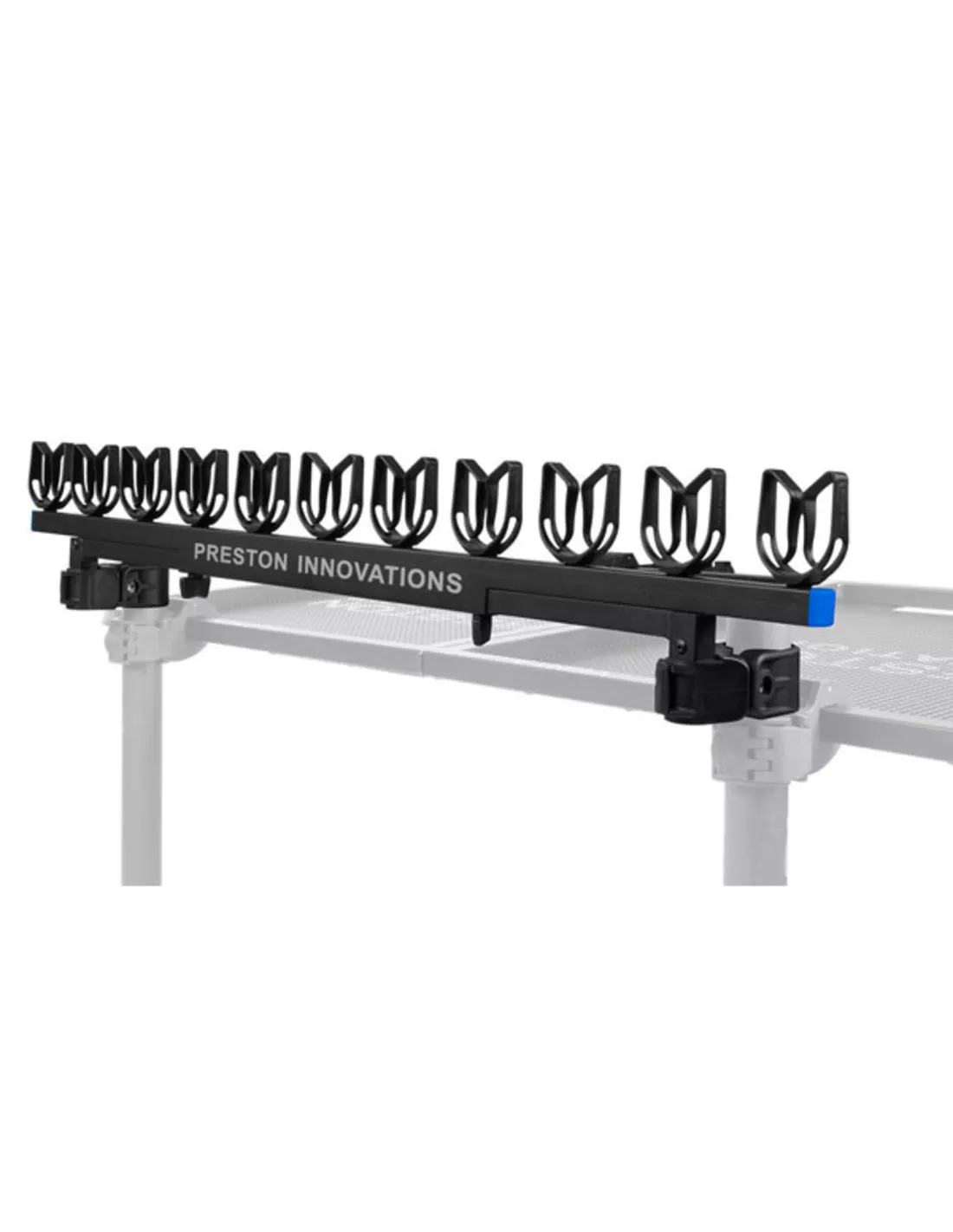 De Offbox 36 – Extending Gripper Roost van Preston Innovations is speciaal ontworpen om tot 11 topsets of hengels veilig op hun plaats te houden. De Extending Gripper Roost is voorzien van speciale steunen die de topsets vastklemmen, hierdoor blijven topsets in allerlei diameters goed vastgeklemd zitten. Dankzij het unieke uitschuifbare systeem kan de Gripper Roost op een groot aantal aastafels bevestigd worden.