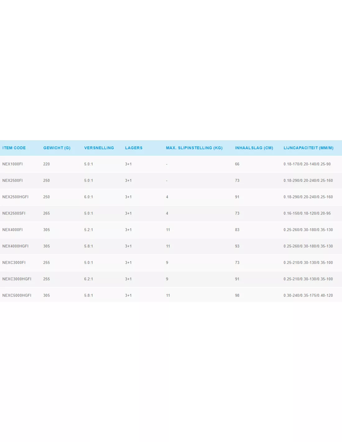 De Shimano Nexave FI serie molens kan worden ingezet voor praktisch alle zoetwatervissen. Van lichtgewicht en middelgroot kunstaas tot waggler- en feedervissen. De 3 Shielded RVS kogellagers zorgen ervoor dat de molen soepel loopt, zelfs onder druk. De slip is gemakkelijk instelbaar en kan grote bonusvissen probleemloos aan. De strakke prijs, gecombineerd met aantrekkelijke moderne zwart-blauwe uiterlijk zal menig visser goed bevallen. De molens vormen tevens de perfecte combinatie met de gelijknamige hengelserie