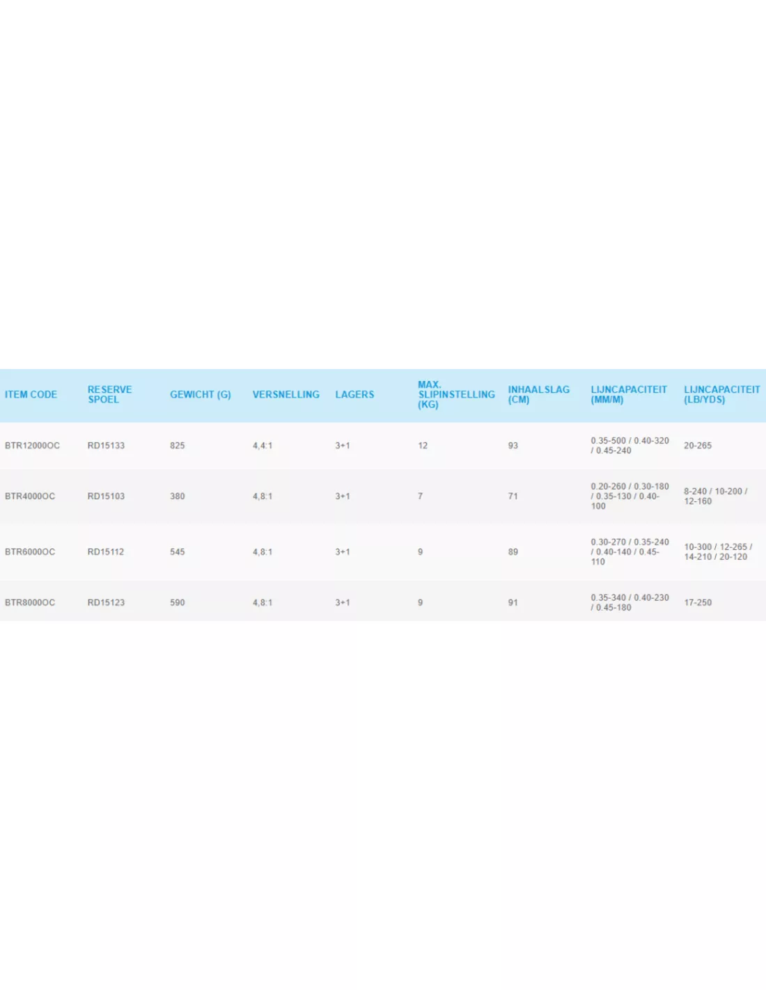 De Baitrunner OC van Shimano is een praktisch molen die enkel gebruik maakt van kwaliteitscomponenten tegen een betaalbare prijs. De AR-C spoel met Varispeed lijnmanagement systeem zorgt voor perfecte lijnligging en betere werp eigenschappen en het Dynabalance systeem zorgt ervoor dat de molen erg soepel loopt. De Baitrunner OC is voorzien van een ergonomisch gefreesde slinger die fijn in de hand ligt en in combinatie met de lagers voor een goede krachtoverbrenging zorgt.