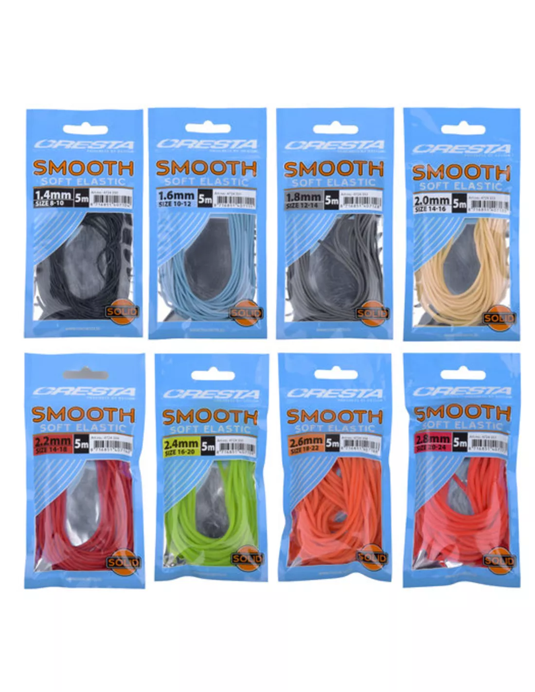 Smooth Elastic is een ‘solid’ elastiek die de beste eigenschappen van volle en holle elastieken combineert met elkaar. De zachte en vergevingsgezinde manier van rekken doet direct denken aan een holle elastiek, maar dan in een gereduceerde diameter. Smooth laat zich gemakkelijk knopen aan elk type bung, stopper en connectors. Bovendien behoudt Smooth hierbij zijn trekkracht! De slijtvastheid van Smooth is zeer hoog waardoor het geschikt is voor intensief gebruik in zowel een gewone, als een pullerkit montage. Smooth is verkrijgbaar in 11 verschillende maten, elk in zijn eigen gemakkelijk te herkennen kleur. Hiermee wordt elke visserij op zowel witvis als karper volledig afgedekt.